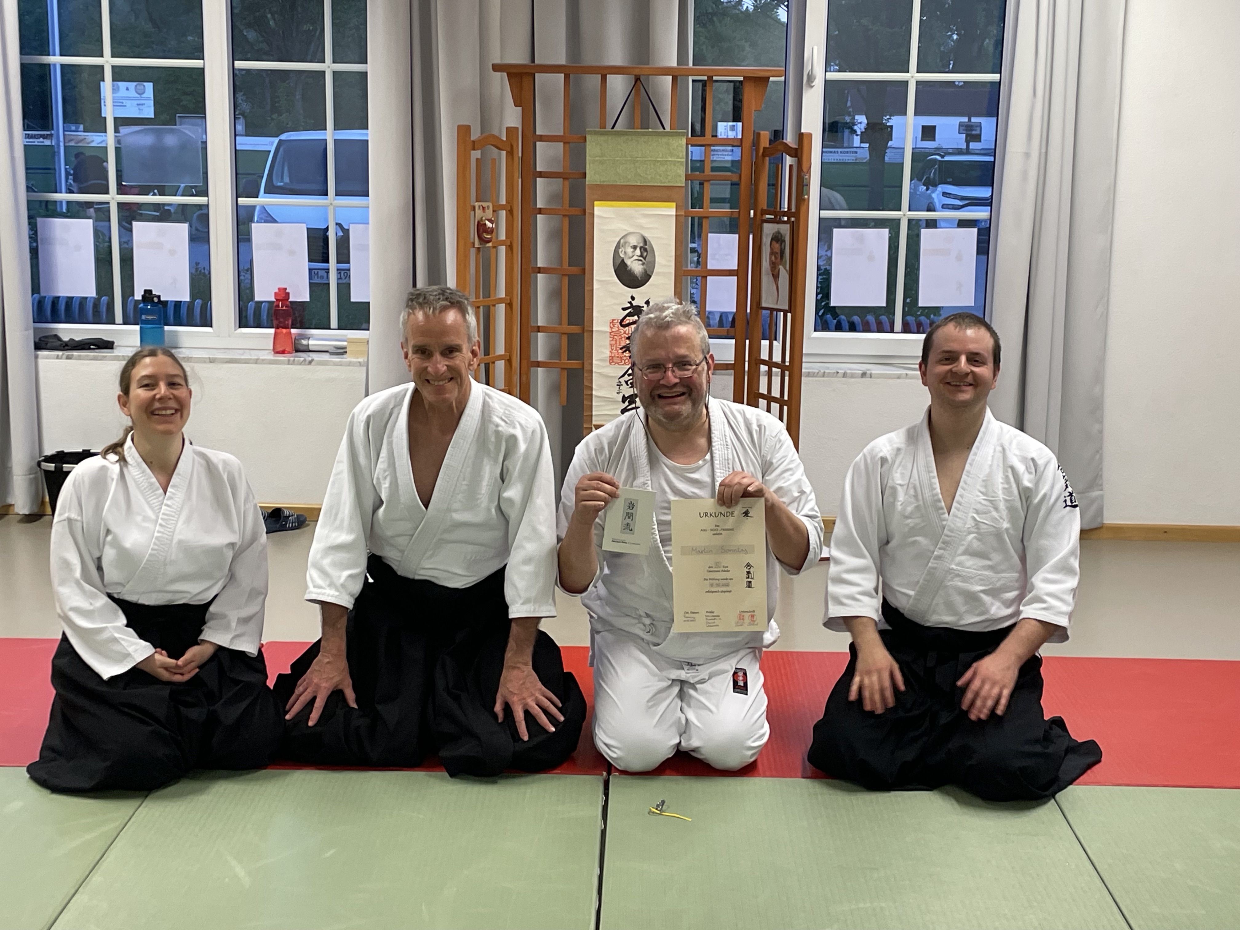 Wir freuen uns sehr und gratulieren herzlich zur bestandenen Prüfung! 1. Dan für Elisabeth Obermaier, Walter Stelzer sowie Andy Pöhlmann (Aikido Erding).